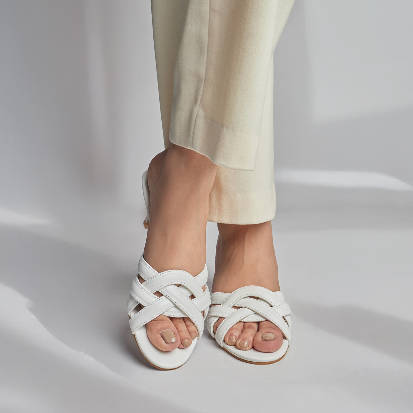 Ilina White Block Heels